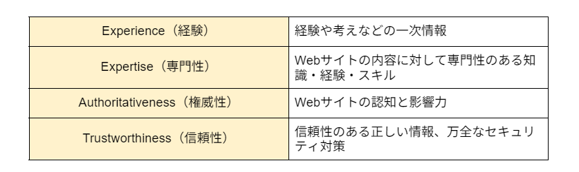 以前はE-A-Tが評価基準となっていましたが、2022年12月にガイドラインが更新され、Experience(経験)のEが加わりました。Webサイトのオリジナリティがより求められるようになったといえます。